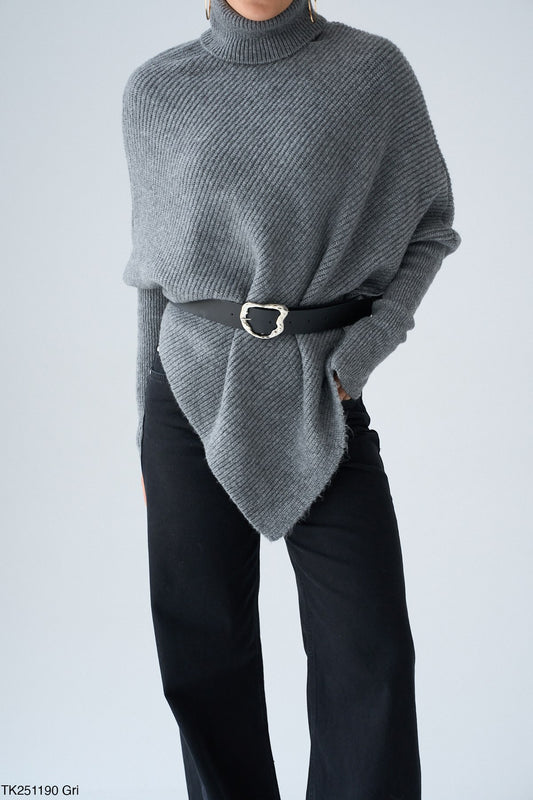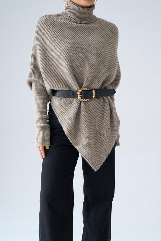 Ribbed Turtleneck Pullover in Grey